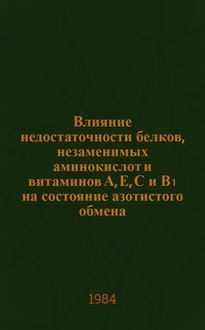 Бычкова Т.А. Влияние разного уровня и качества протеина на молочную продуктивность коров и усвоение питательных веществ рационов : Автореф. на соискание учен. степени канд. с.-х. наук / Науч.-исслед. ин-т сел. хоз-во нечернозем. зоны. - Немчиновка, Моск. обл., 1970. - 18 с. ; 20 см. - Список работ авт.: с. 18