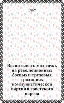 Воспитывать патриотов : [Материалы Белгор. обл. науч.-практ. конф., сост. 3 авг. 1973 г.] : (В помощь лекторам, пропагандистам, политинформаторам) / Отд. пропаганды и агитации Белгор. обкома КПСС. Белгор. обл. организация о-ва "Знание". - Белгород : Б. и., 1973 (вып. дан. 1974). - 41 с. ; 20 см