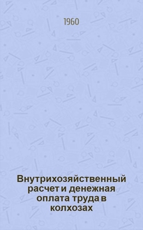 Внутрихозяйственный расчет в колхозах : Из опыта хоз-в центр.-черноземной зоны