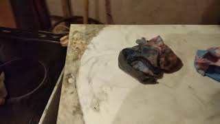 В этом видео идет речи о том, как отмыть газовую копоть с кухонной мебели и о том как газовщики поставили счетчик.