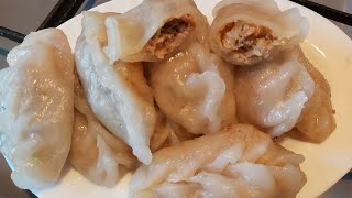 Кулинария #ЛянаКим #Пигоди крахмал картофельный - 300 гр. кипяток - 350 мл. соль - 1 щеп. фарш - лук,капуста,специи.