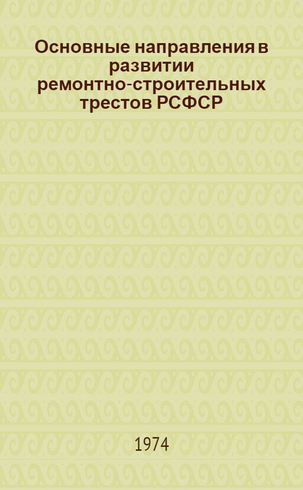 Основные направления в развитии ремонтно-строительных трестов РСФСР : (Опыт работы ремстройтрестов № 1 и 2 Леноблисполкома)