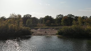 Край лета и огни осени. Дикий пляж и дубравы лопуховатого острова. Взгляд с неба.