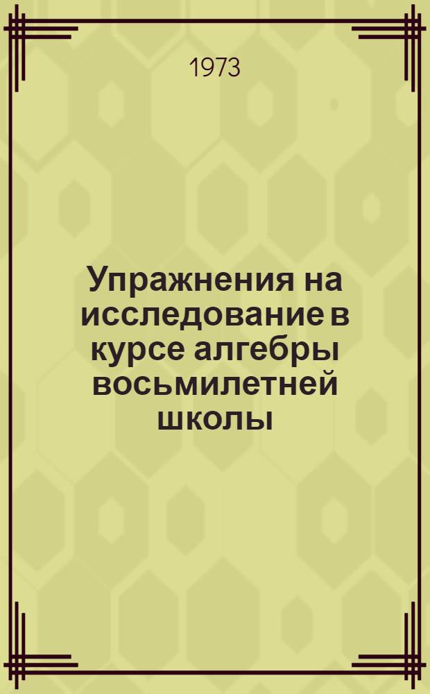 Упражнения на исследование в курсе алгебры восьмилетней школы : Автореф. дис. на соиск. учен. степени канд. пед. наук : (13.00.02)