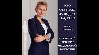 Вебинар Виктории Чердаковой "Кто отвечает за подбор кадров? " Виктория Чердакова - рекрутер с 15-летним опытом в ...