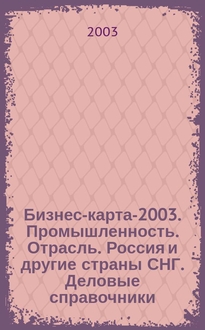 Бизнес-карта-2003. Промышленность. [Регион. Деловые справочники]. Т. 17. Северо-Западный Федеральный округ. Административно-управленческие структуры. Социально-экономическое положение. Архангельская область. Вологодская область. Мурманская область. Республика Карелия. Республика Коми. Россия / Агентство деловой информации [Бизнес-карта]. - Москва : АДИ "Бизнес-Карта", 2003. - 556,[1] с. : карт. ; 21 см. - Указатели: Алф. указ. по видам продукции и услуг, Алф. указ. по видам сырья и материалов, используемых предприятиями, Алф. указ. предприятий по обл., респ.: с. 6-86