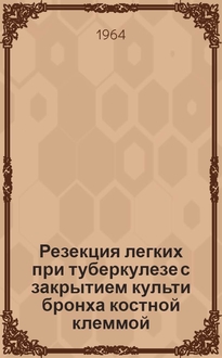 Картавенко А.Н. Резекция легких при туберкулезе : (К 50-летию СГМИ) : Актовая речь / Смол. гос. мед. ин-т. - Смоленск : Б. и., 1970. - 31 с. ; 21 см. - Список опубл. работ по хирург. лечению туберкулеза легких, выполн. на кафедре госпит. хирургии: с. 28-31 (57 назв.)