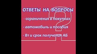 Ограничения в покупках.Авто и пособия. В1 и срок получения АБ