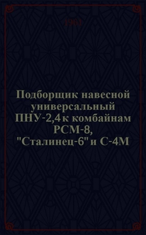 Подборщик навесной унифицированный ПС-2,0 : Устройство. Сборка. Применение. Уход. - Москва : ЦБТИ, 1956. - 16 с. : ил. ; 20 см