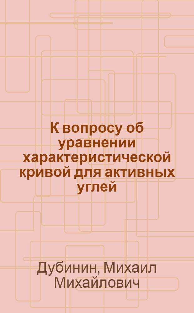 К вопросу об уравнении характеристической кривой для активных углей