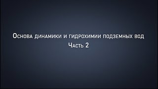 Курс "Основы динамики и гидрогеохимии подземных вод". Часть 2. Аннотация