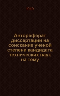 Ильичева З.В. Автореферат по диссертационной работе на соискание ученой степени кандидата технических наук на тему: "Исследование влияния глубокого охлаждения на стойкость режущего инструмента" / М-во высш. образования СССР. Моск. автомехан. ин-т. - [Москва : Б. и., 1949]. - 4 с. ; 22 см