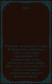 Решение Научно-технической сессии по топливоиспользованию и автоматизации в металлургической промышленности, состоявшейся 9-11 февраля 1950 года в Москве. В произведении подчеркивается, что оно является первым в стране произведением подобного рода, в котором широко применялась система разделения труда.