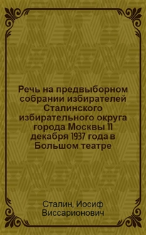 Речь товарища И.В.Сталина на предвыборном собрании избирателей сталинского избирательного округа г.Москвы. 11 декабря 1937 года в Большом ...