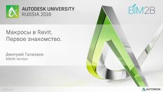 Видео для Autodesk University Russia 2016. Работа с макросами Revit для начинающих. Автор - Дмитрий Талалаев, эксперт BIM2B....