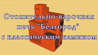 В ролике показана домашняя отопительно варочная печь с камином и духовкой "Белгород" (проект печи), из кирпича, на дровах, с варочной плитой, ...