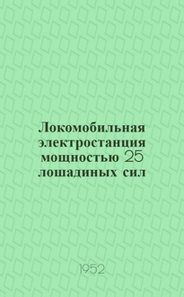 Локомобильная электростанция мощностью 25 лошадиных сил : [Стены: а) кирпичные; б) рубленые / М-во совхозов СССР. Всесоюз. гос. ин-т по проектированию совхоз. строительства "Гипросовхозстрой". - 4-е изд.]. - Москва : Б. и., 1953. - [2], 76 с., 36 с. черт. ; 30 см. - (Типовой проект ; № 1-40)