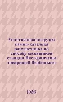 Уплотненная погрузка известкового камня и электромагнитных семеочистительных машин ЭМС-1 : Способы выгрузки лесных и навалочных грузов. - Воронеж : Б. и., 1955. - 8 с., 2 л. схем. ; 21 см. - (МПС СССР. Юго-Восточная железная дорога. Технический отдел дороги и Дорожное научное инженерно-техническое общество. Информационно-техническое письмо)