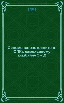 Соломополовокопнитель СПК к самоходному комбайну С-4,0 : Временное руководство по сборке и применению / М-во машиностроения СССР. Главсельмаш. - [Москва] : ЦБТИ, 1954. - 17 с. : ил. ; 19 см