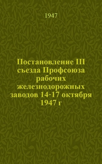 Союз рабочих ж.-д. заводов СССР. Постановление одиннадцатого пленума Центрального комитета Профессионального союза рабочих железнодорожных заводов 19-20 апреля 1946 г.. - Москва : ЦК Профсоюза рабочих ж.-д. заводов, 1946 (6-я тип. Трансжелдориздата). - 39 с. без обл. ; 14 см