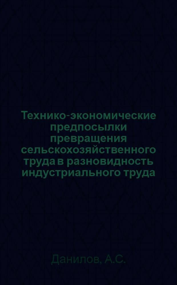 Данилов А.С. Технико-экономические предпосылки превращения сельскохозяйственного труда в разновидность индустриального труда : (По материалам Узбекистана) : Автореферат дис. на соискание ученой степени кандидата экономических наук / М-во высш. и сред. спец. образования УзССР. Ташк. ин-т нар. хозяйства. - Ташкент, 1963. - 23 с. ; 20 см