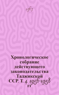 Хронологическое собрание законов Азербайджанской ССР, указов Президиума Верховного Совета и постановлений правительства Азербайджанской ССР : Т. 4-. Т. 4 : 1953-1955 гг.. В произведении выделены наиболее важные из них и описаны важнейшие этапы их становления и развития, выделены соответствующие разделы и подзаконные акты.