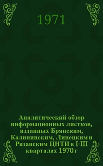Аналитический обзор деятельности межотраслевых территориальных информационных органов в РСФСР по научно-технической пропаганде за 1967 год / Объединение по руководству науч.-техн. информацией и пропагандой в РСФСР при Гос. ком. Совета Министров по науке и технике. Гос. науч.-исслед. ин-т науч и техн. информации (ГосИНТИ). - Москва : Б. и., 1968. - 90 с. 2 л. табл. ; 21 см