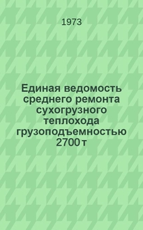 Единая ведомость текущего ремонта буксирного теплохода мощностью 800-1100 лошадиных сил типа Ч-800 : Утв. 16/XII 1967 г / М-во реч. флота РСФСР. - [Москва] : Транспорт, 1968. - 113 с. ; 20х30 см