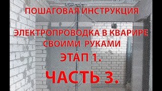 Этап 1. Часть 3. Следующая часть пошаговой видео инструкции монтаж электропроводки своими руками. На конкре...