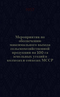 Мероприятия по обеспечению максимального выхода сельскохозяйственной продукции на 100 га земельных угодий в колхозах и совхозах МССР. Подсолнечник : Проект / М-во сел. хоз-ва МССР. - Кишинев : Гос. изд-во Молдавии, 1957. - 20 с. ; 20 см