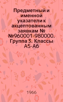 Предметный и именной указатели к акцептованным заявкам №№ 980001-1000000 : [Группа 1-]. [Группа 14. Классы C6-C7] : Сахар; кожевенная, меховая промышленность, спиртные напитки, микробиология; черные и цветные металлы, сплавы, очистка металлов, флюсы, тепловая обработка металлов, электролиз, химическая обработка металлов
