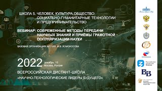 Вебинар "Современные методы передачи научных знаний и приёмы грамотной популяризации науки"
