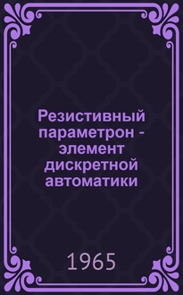 Вишневецкий А.И., Сергиенко И.С. Параметрон : (Новые переключающие элементы). - Москва : Воениздат, 1961. - 68 с. : ил. ; 20 см. - Библиогр.: с. 66-67 (19 назв.)
