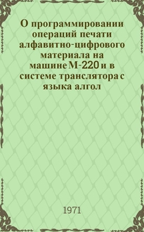 Грицук И.П., Дун С.Л. О программировании доказательств на УЦВМ. - Киев : Б. и., 1964. - 18 с. : схем. ; 22 см. - (Научный совет по кибернетике Академии наук УССР. Киевский дом научно-технической пропаганды. [Материалы научных семинаров по теоретическим и прикладным вопросам кибернетики] / Семинар "Теория автоматов")