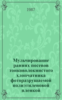 Джекс Дж.В., Бринд У.Д., Камерон-Смит Р. Мульчирование : (Техн. сообщение № 49 Бюро почвоведения Британ. содружества наций) / Перевод с англ. Л.Ф. Блохина; Под ред. и со вступ. статьей чл.-кор. ВАСХНИЛ проф. Н.С. Соколова. - Москва : Изд-во иностр. лит., 1958. - 218 с. : ил. ; 20 см. - Библиогр.: с. 208-217 (275 назв.)