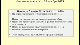 28112019 Налоговая новость об учете расходов, ремонте обуви, подрядчиках в рамках ПСН