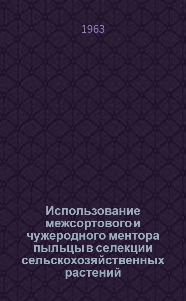 Использование межсортового и чужеродного ментора пыльцы в селекции сельскохозяйственных растений : (К проблеме биологии оплодотворения и гетерозиса культ. растений) [Сборник статей В 2 вып. Вып. 2 : Ментор пыльцы в селекции озимой ржи, подсолнечника, сорго, моркови, винограда, грецкого ореха