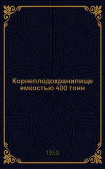 Корнеплодохранилище емкостью 400 тонн : (Стены кирпичные или бутобетонные; покрытие из сборных железобетонных элементов) / М-во сел. хозяйства СССР. Гипросельхоз. - Москва : Гипросельхоз, 1959. - 44 с., 26 с. черт. ; 31 см. - (Типовой проект ; № 08-115-2 (№ 0973))