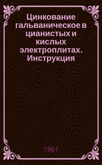 Кудрявцев Н.Т., Тютина К.М., Михайлов Н.И. Цинкование в аммиакатном электролите и фосфатирование цинковых покрытий / Акад. наук СССР. Филиал Всесоюз. ин-та науч. и техн. информации. - Москва : Б. и., 1958. - 12 с. : граф. ; 26 см. - (Передовой научно-технический и производственный опыт . Защита металлов от коррозии, износостойкие, отделочные и декоративные покрытия ; Тема 13 № М-58-63/6)