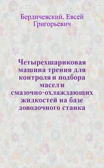 Матвеевский Р.М. Четырехшариковая машина КТ-2 для определения критических температур пленки масла на металле. Установка для испытаний материалов на эрозионную стойкость при высоких давлениях / [Канд. техн. наук Л.А. Урванцов]; Гос. науч.-техн. ком. Совета Министров СССР. Акад. наук СССР. Филиал Всесоюз. ин-та науч. и техн. информации. - Москва : Б. и., 1957. - 27 с. : ил. ; 26 см. - (Передовой научно-технический и производственный опыт . Приборы для исследования износа, трения, твердости, прочности, пластичности, ползучести, упругости и других физико-механических свойств материалов и конструкций ; Тема 32 [№ П-57-88/9])