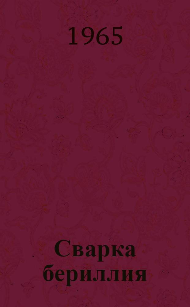 Сварка бериллия : Аннот. библиогр. указатель отеч. и иностр. литературы за 1958-1965 гг. (I квартал) / Акад. наук УССР. Ордена Трудового Красного Знамени ин-т электросварки им. Е.О. Патона. Науч. б-ка. - Киев : Б. и., 1965. - 20 с. ; 20 см