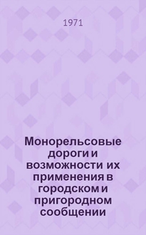 Пикуль В.С. Монорельсовые пассажирские дороги / Гос. производ. ком. по трансп. строительству СССР. Техн. упр. Оргстрансстрой. - Москва : Б. и., 1964. - 62 с. : ил. ; 26 см. - (Техническая информация). - Библиогр.: с. 60-61