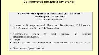 Сокращение срока запрета на занятие предпринимательской деятельностью после банкротства / bankruptcy