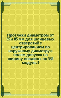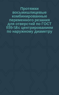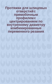 Протяжки для шестишлицевых отверстий с прямобочным профилем с центрованием по наружному диаметру комбинированные переменного резания. Двухпроходные. Конструкция и размеры. - Издание май 2004г. с Изм. N 1,2. - Москва : Изд-во стандартов, 2004. - 30 с
