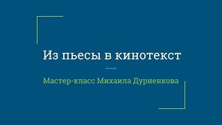 Мастер-класс Михаила Дурненкова в рамках "Из пьесы в кинотекст" КИНОТЕКСТ представляет третий, долгожданны...