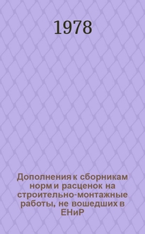 СССР. Дополнения и изменения к ведомственным нормам и расценкам на строительные, монтажные и ремонтно-строительные работы (ВНир) / М-во трансп. строительства СССР. - Москва : Оргтехстрой, 1966. - 20 см