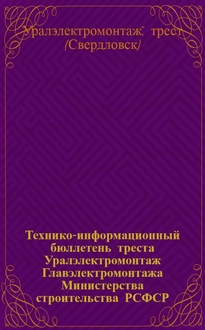 "Уралэлектромонтаж", трест (Свердловск). Ижевское монтажное управление. Технико-информационный бюллетень Ижевского монтажного управления / М-во строительства РСФСР. Главэлектромонтаж. Трест "Уралэлектромонтаж". - Ижевск : Б. и., 1959. - 23 с. : ил. ; 25 см
