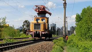 Дрезина ДГку подбирает рельсы на перегоне