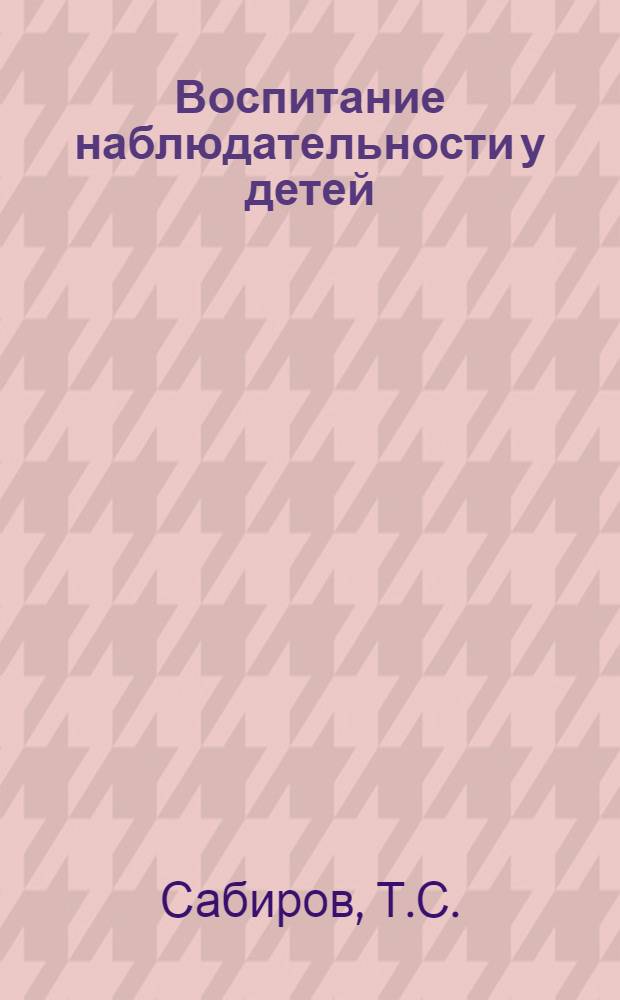 Сабиров Т.С. Воспитание наблюдательности у детей / О-во по распространению полит. и науч. знаний КазССР. - Алма-Ата : Б. и., 1962. - 46 с. ; 20 см