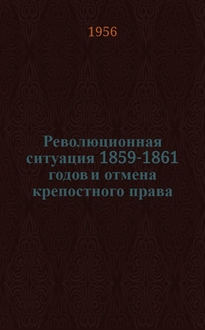 Революционная ситуация в России в 1859-1861 гг. : [Сборник статей / Ред. коллегия: акад. М.В. Нечкина (отв. ред.) и др. Сб. 4]; Акад. наук СССР. Ин-т истории. - Москва : Наука, 1965. - 463 с., 1 л. ил. ; 26 см